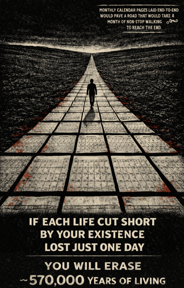 The number of lives cut short directly and incidentally to support your life, to support the continued existence of a single human life in the modern world, is absolutely staggering. You've heard of a carbon footprint, well this website makes an attempt to quantify your deathprint.