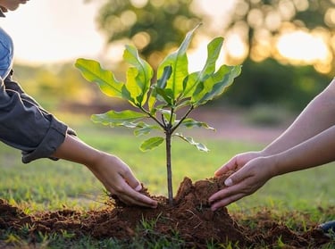 Plant Trees: Triple Win for Land, Lives, and Climate. Planting trees is a low-effort action with high return. Each 10–20 trees planted or funded can restore 20–60 m² of habitat, absorb ~150 kg of CO₂ per year, and support hundreds of wild lives—birds, mammals, and insects. Even a small garden can fit native trees or shrubs. Reforesting part of your footprint is one of the most tangible ways to reduce land use, store carbon, and bring back biodiversity. If you can’t plant yourself, use trusted platforms like Ecologi; for each item of merch you buy from us, we fund Ecologi to plant a tree. Our merch also sparks conversations that help others reduce their deathprint!